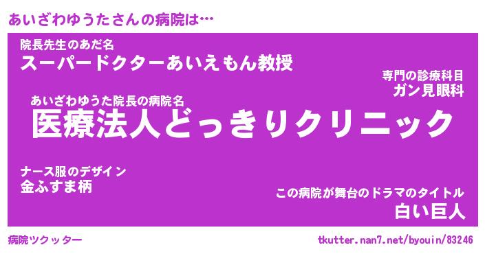 | 恥ずかしいあだ名 | 『プリティーあいざわゆうた』『あいちん』 |