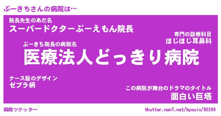 | 意味不明あだ名 | 『ペロリンぶーきち』『永久保存ぶーきち』 |