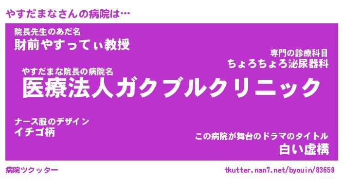 | ファンタジー風あだ名 | 『ヤスフェル』『エターナルヤスダマナー』 |