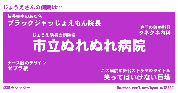 | 意味不明あだ名 | 『ペロリンじょうえ』『永久保存じょうえ』 |