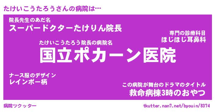 | ヘコむあだ名 | 『たけにゅー』『つくし』『たけを』 |