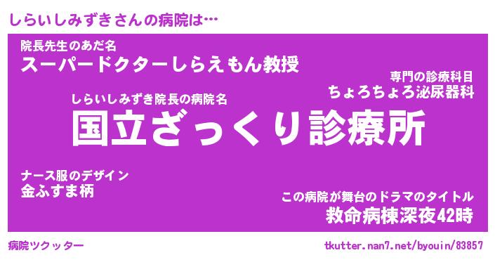 | 伝説のあだ名 | 『伝説のスナイパーしらいしみずき』 |