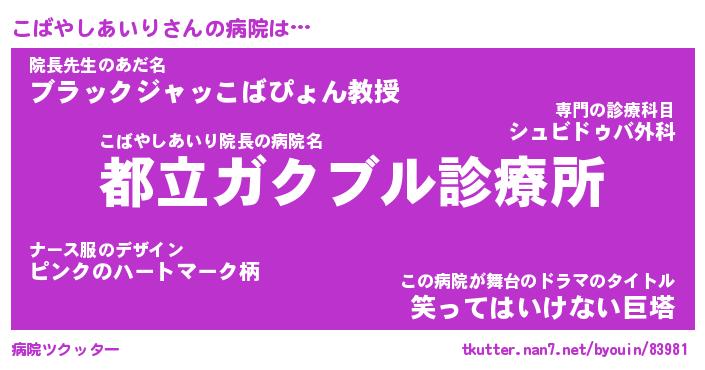 | ポケモン風あだ名 | 『コバチュウ』『コバヤダネ』 |