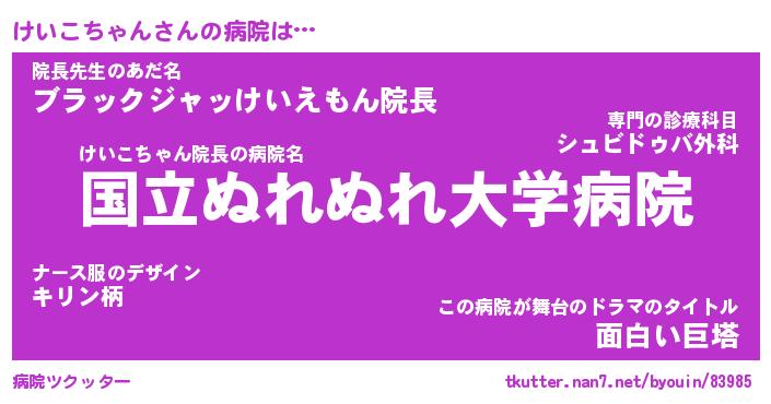 | ヘコむあだ名 | 『けいもー』『なまこ酢』『けいお』 |
