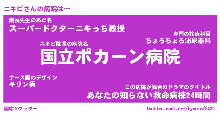 | ポケモン風あだ名 | 『ニキチュウ』『ニキビダネ』 |