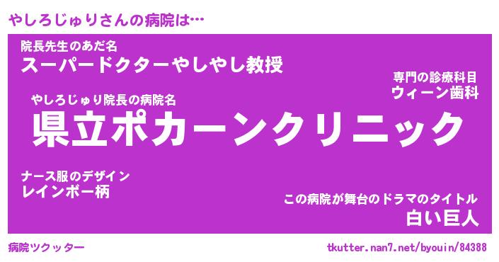| ヒーロー風カッコイイあだ名 | 『スーパーヤシロジュリ』『黄金騎士ヤシ』 |