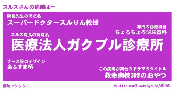 | ポケモン風あだ名 | 『スルチュウ』『スルスダネ』 |