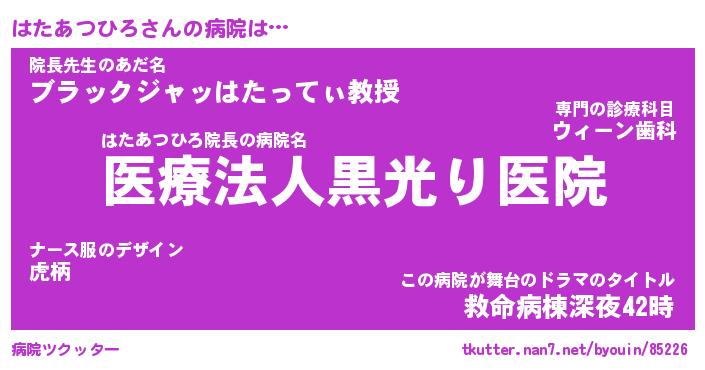 | 胡散臭い通販商品みたいなあだ名 | 『億万長者になれるブレスレット…その名も「はたあつひろ」』 |