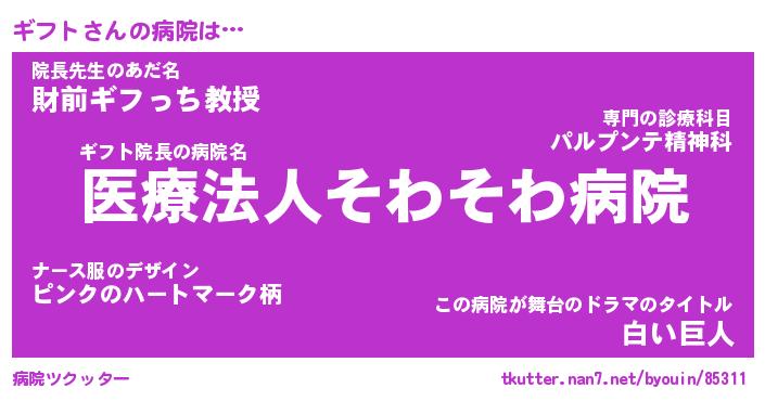 | 2回繰り返すあだ名 | 『ギフギフ』『ギギフフ』『ぎざぎざ』 |