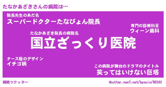 | 伝説のあだ名 | 『伝説のスナイパーたなかあざき』 |