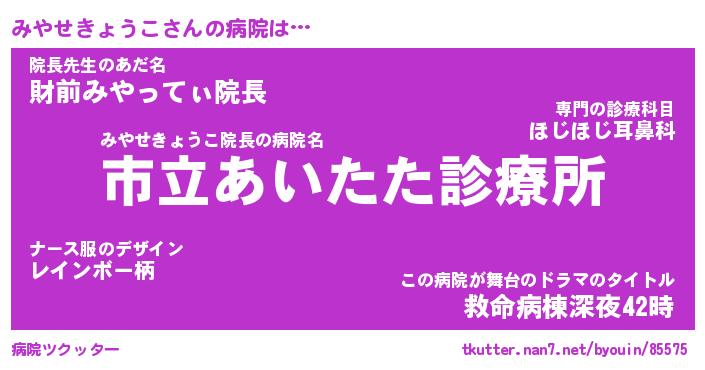 | 肩書あだ名 | 『みやせきょうこ御曹司』 |