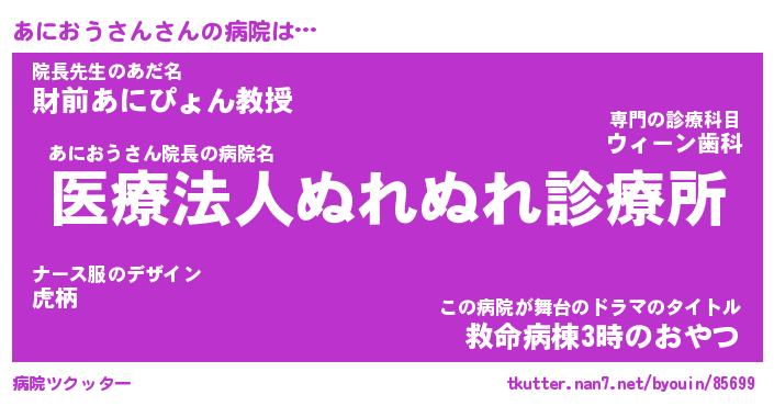 | ヘコむあだ名 | 『あにもー』『豆乳』『あにを』 |