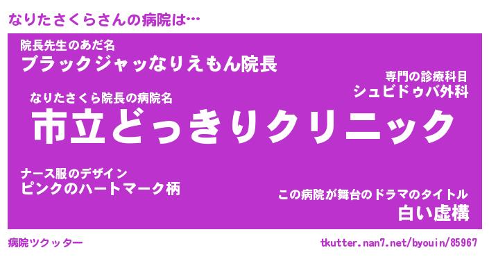 | ヒーロー風カッコイイあだ名 | 『スーパーナリタサクラ』『魔戒騎士ナリ』 |