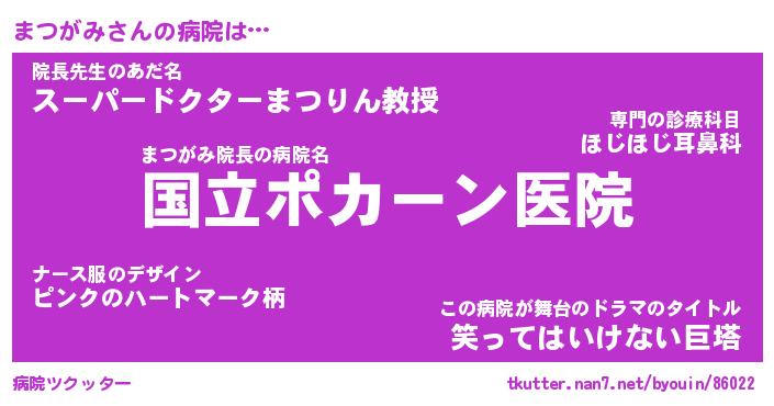 | 意味不明あだ名 | 『ペロリンまつがみ』『永久保存まつがみ』 |