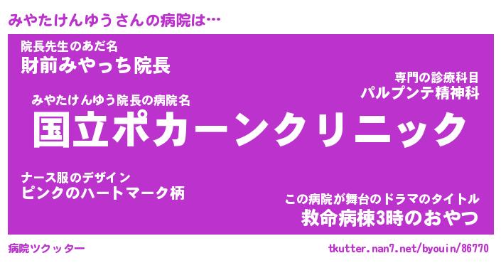 | ヘコむあだ名 | 『みやにゅー』『牛乳』『みやを』 |