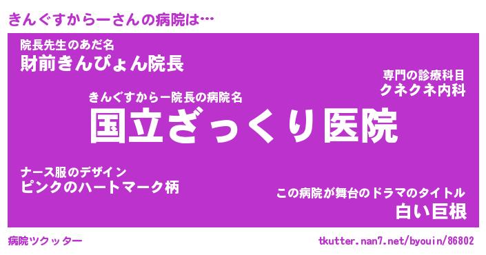 | 伝説のあだ名 | 『伝説のスナイパーきんぐすからー』 |