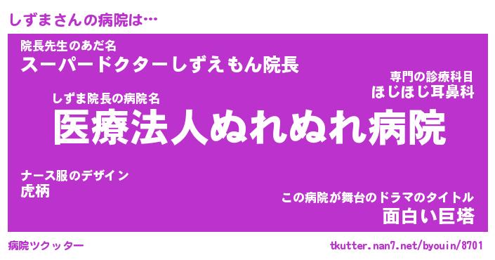 | ヒーロー風カッコイイあだ名 | 『スーパーシズマ』『ウルトラしずまマン』 |