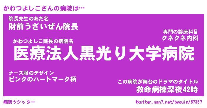| 胡散臭い通販商品みたいなあだ名 | 『億万長者になれるブレスレット…その名も「かわつよしこ」』 |