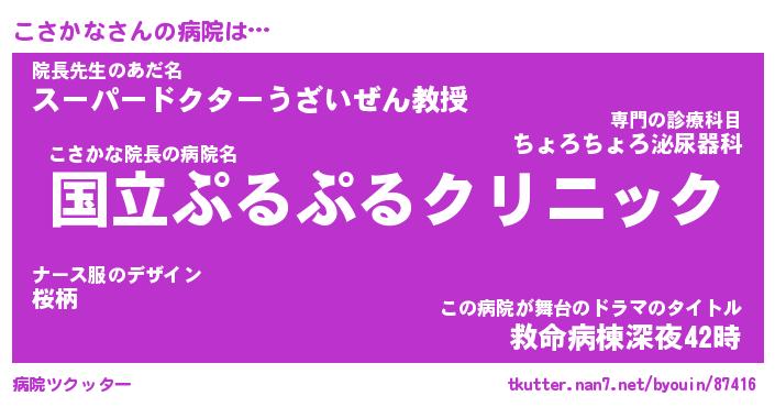| 2回繰り返すあだ名 | 『こさこさ』『ここささ』『ぐえぐえ』 |