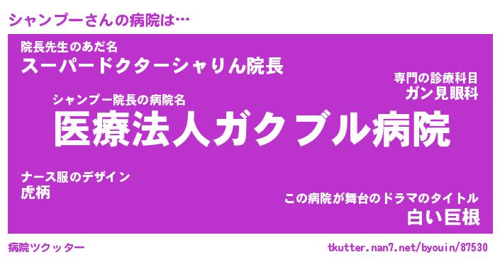 | 2回繰り返すあだ名 | 『シャシャ』『シシャャ』『あんあん』 |