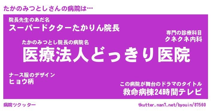 | 肩書あだ名 | 『たかのみつとし御曹司』 |