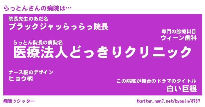 | 意味不明あだ名 | 『ペロリンらっとん』『永久保存らっとん』 |
