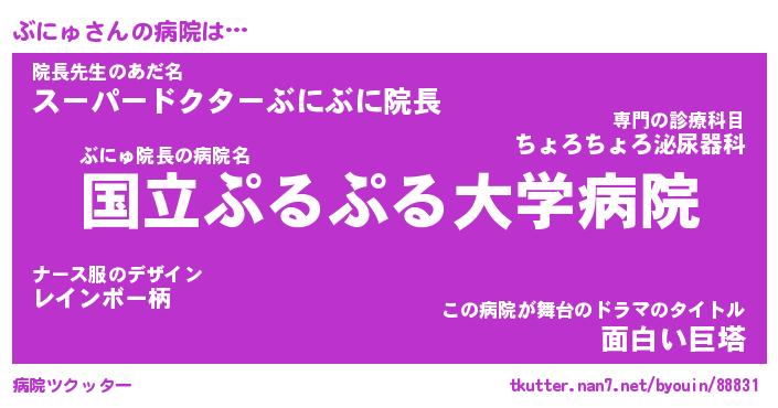 | 女子向けラノベタイトル風あだ名 | 『(仮)ぶにゅのやんごとなき事情』 |