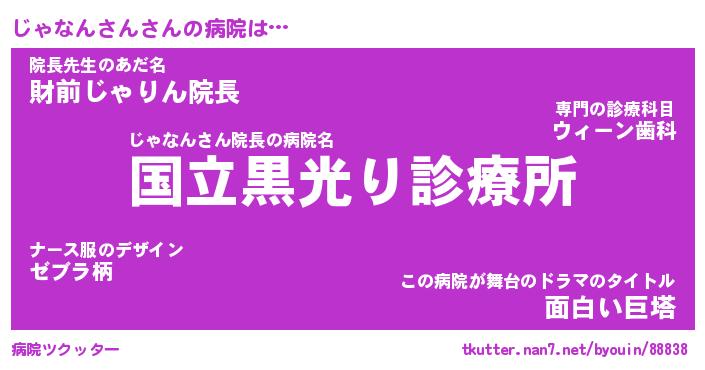 | 男性向けラノベタイトル風あだ名 | 『じゃなんさんの憂鬱』 |