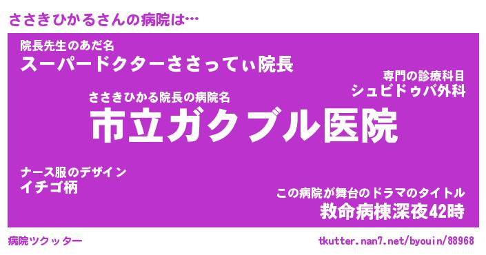 | ヒーロー風カッコイイあだ名 | 『スーパーササキヒカル』『暗黒騎士ササ』 |