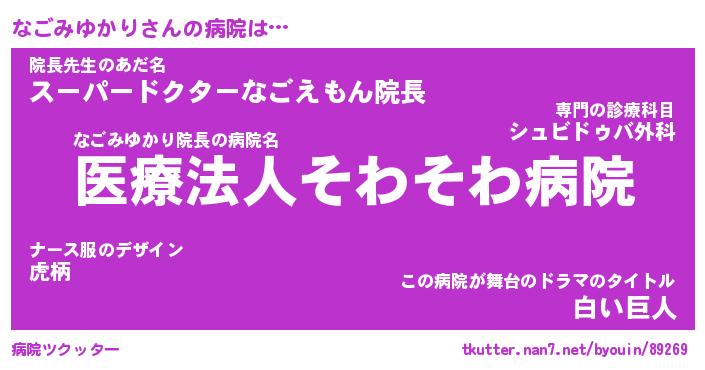 | ヒーロー風カッコイイあだ名 | 『スーパーナゴミユカリ』『魔戒騎士ナゴ』 |