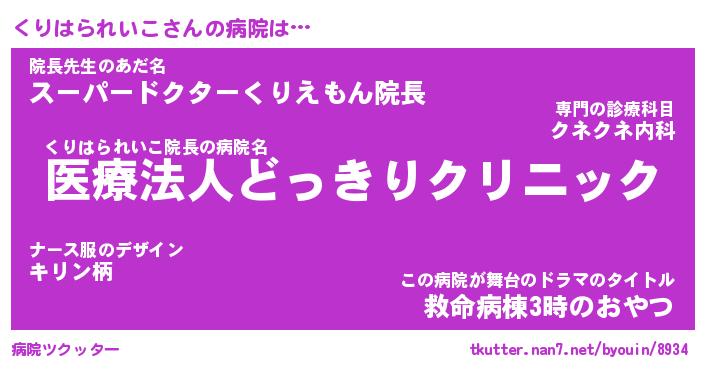 | ヒーロー風カッコイイあだ名 | 『スーパークリハラレイコ』 |