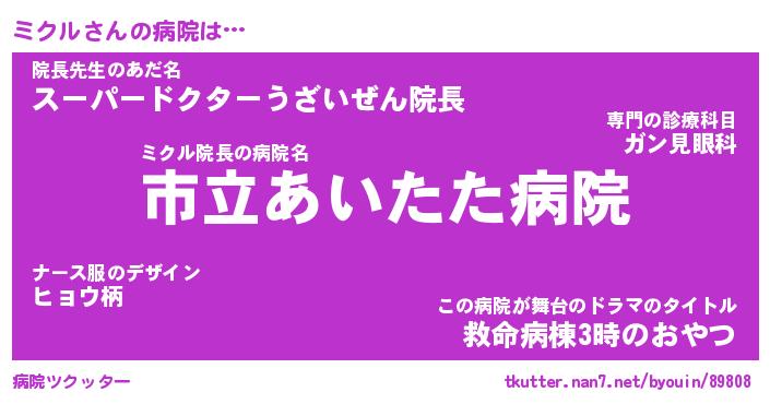 | ポケモン風あだ名 | 『ミクチュウ』『ミクルダネ』 |