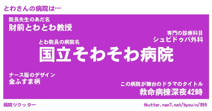 | ポケモン風あだ名 | 『トワチュウ』『トワダネ』『ヒトワ』 |