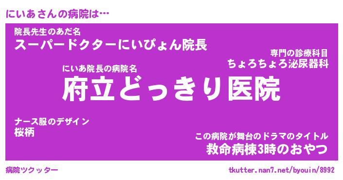 | 2回繰り返すあだ名 | 『にいにい』『ににいい』『ぐえぐえ』 |