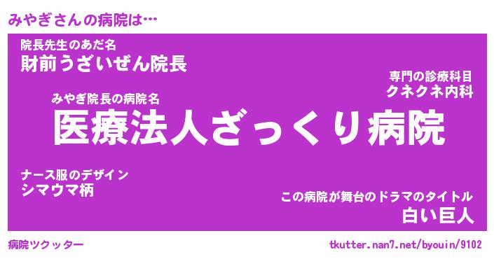 | ファンタジー風あだ名 | 『ミヤフェル』『エターナルミヤギー』 |