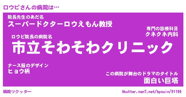 | 2回繰り返すあだ名 | 『ロウロウ』『ロロウウ』『ぶすぶす』 |