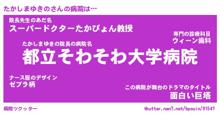| 恥ずかしいあだ名 | 『プリティーたかしまゆきの』『たかちん』 |
