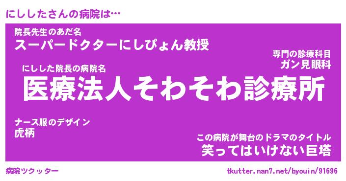 | ポケモン風あだ名 | 『ニシチュウ』『ニシシダネ』 |
