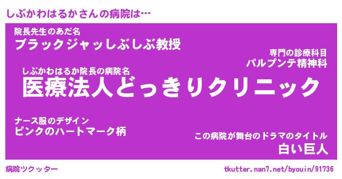 | 恥ずかしいあだ名 | 『プリティーしぶかわはるか』『しぶちん』 |