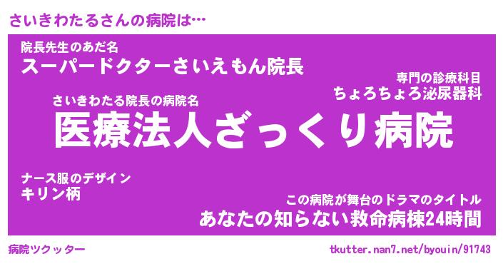 | 胡散臭い通販商品みたいなあだ名 | 『億万長者になれる霊験あらたかなお札…その名も「さいきわたる」』 |