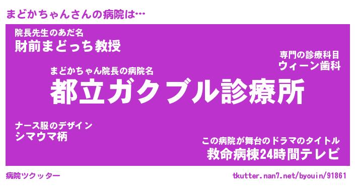 | 恥ずかしいあだ名 | 『プリティーまどかちゃん』『まどっちょ』 |
