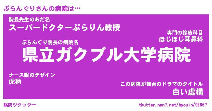 | 男性向けラノベタイトル風あだ名 | 『ぷらんぐりの憂鬱』 |