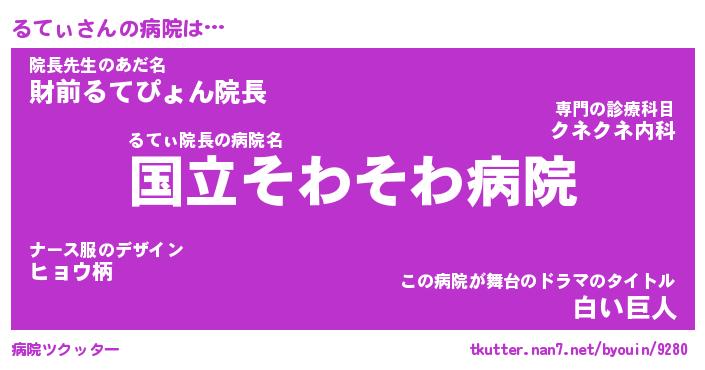 | 男性向けラノベタイトル風あだ名 | 『るてぃの憂鬱』 |