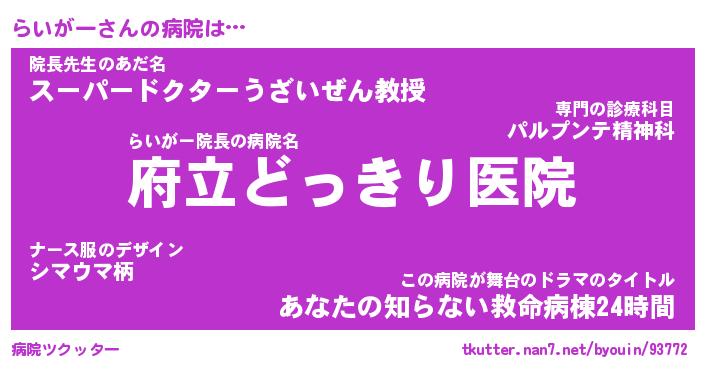 | 男性向けラノベタイトル風あだ名 | 『らいがーの憂鬱』 |