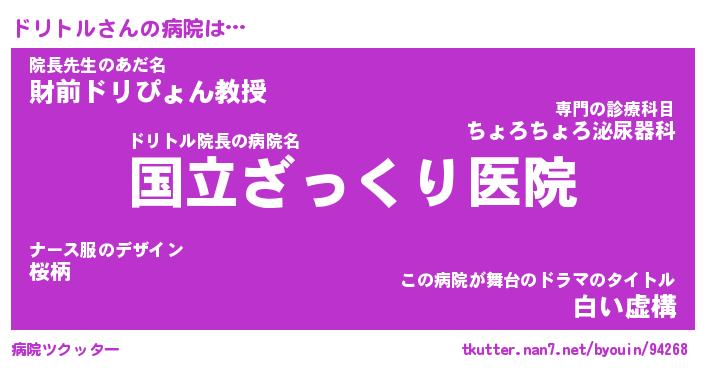 | 女子向けラノベタイトル風あだ名 | 『(仮)ドリトルのやんごとなき事情』 |
