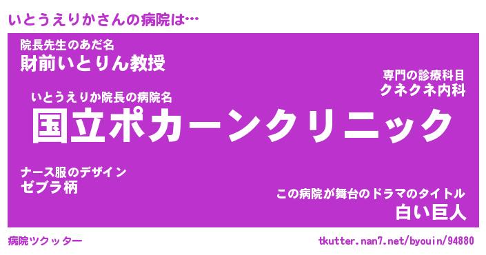 | ヒーロー風カッコイイあだ名 | 『スーパーイトウエリカ』『銀牙騎士イト』 |