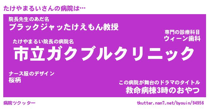 | ヘコむあだ名 | 『たけにゅー』『なまこ酢』 |