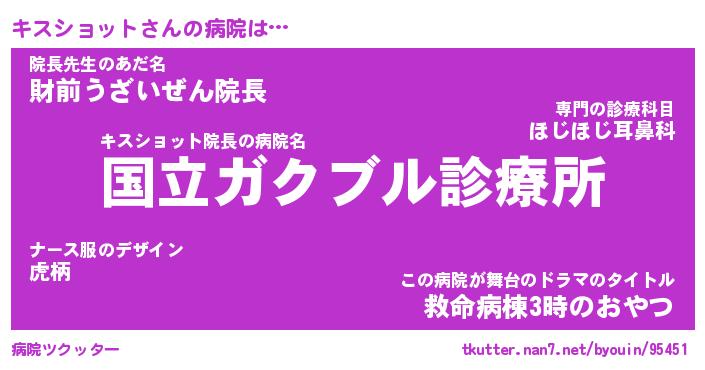 | 男性向けラノベタイトル風あだ名 | 『キスショットの憂鬱』 |