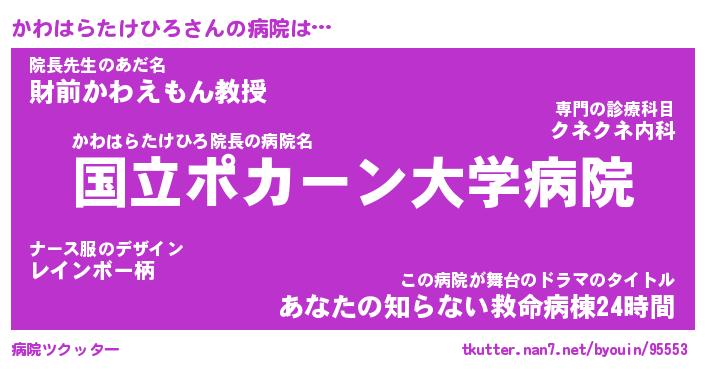 | 肩書あだ名 | 『かわはらたけひろ店長』 |