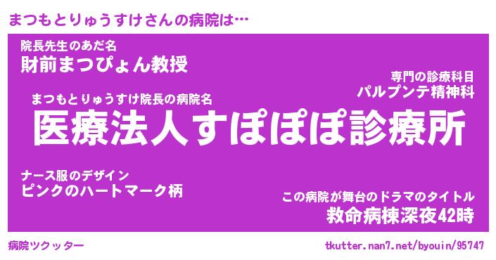 | ヘコむあだ名 | 『まつもー』『酢こんぶ』『まつ太郎』 |